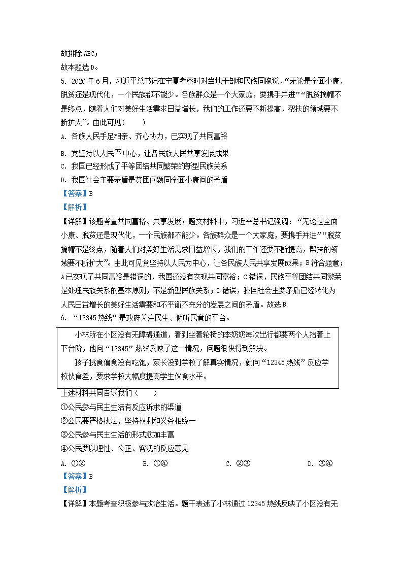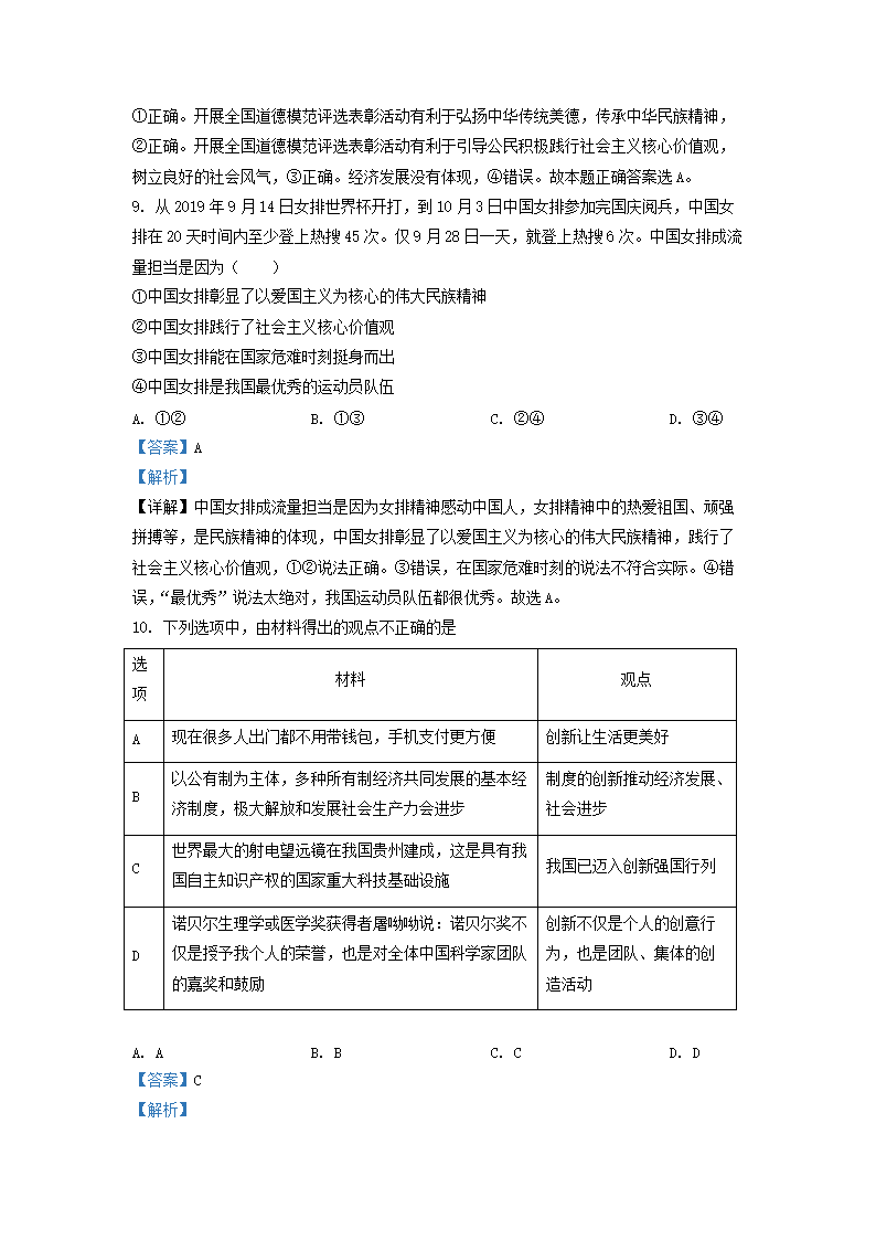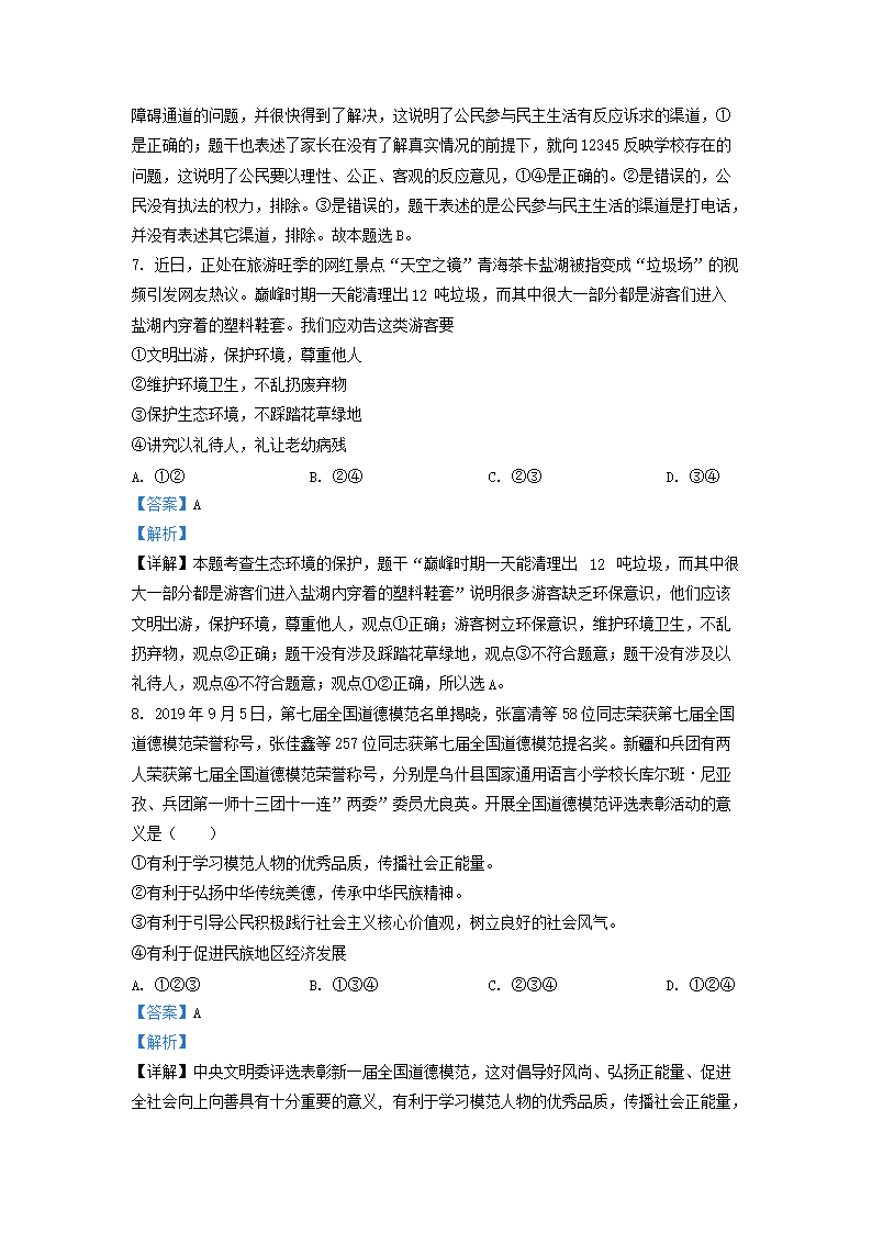 2020-2021学年北京延庆区初三第一学期道德与法治期末试卷及答案(Word版)07-22