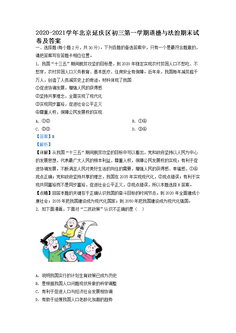 【文档预览】 文档大全网整理发布2020-2021学年北京延庆区初三第一学期道德与法治期末试卷及答案(Word版),前五页预览如下: