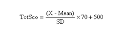 例2:某考生四级报道总分是500分,从表1可以查到其在常模群体中的相应百分位在44%~55%之间,表示这名考生的英语成绩至少优于常模群体中44%的人,但不会优于55%的人。
