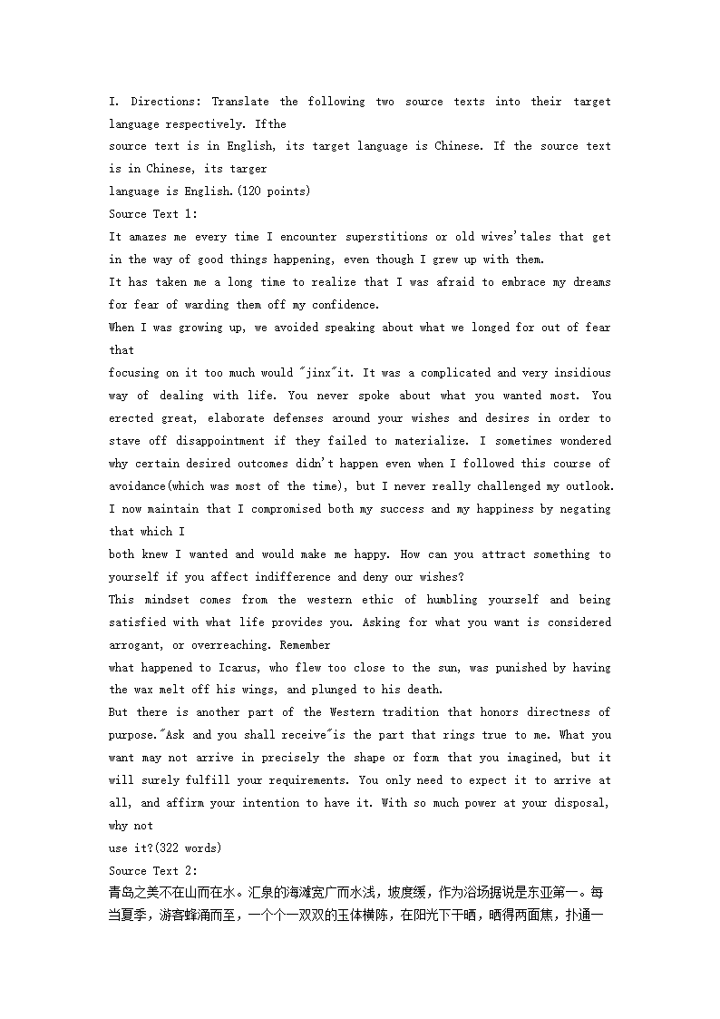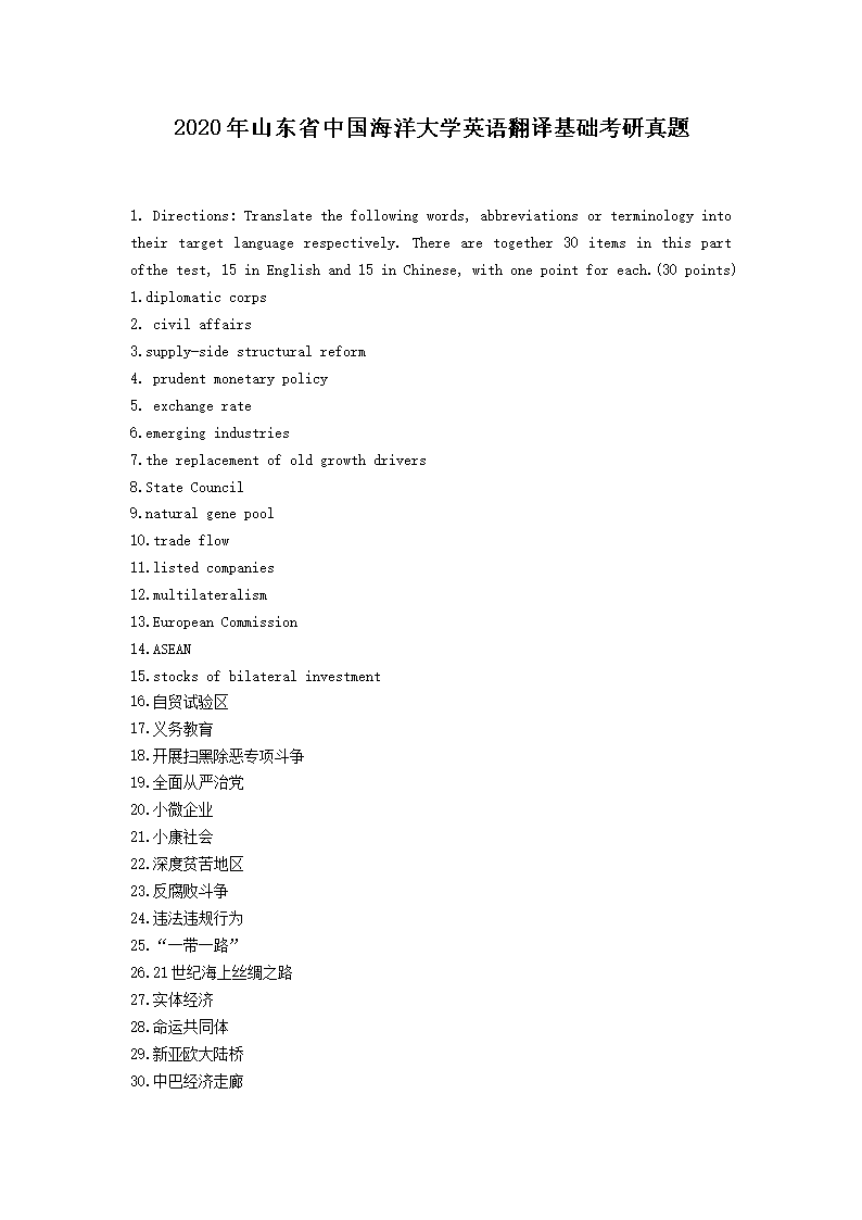 2020年山东省中国海洋大学英语翻译基础考研真题(Word版)06-01