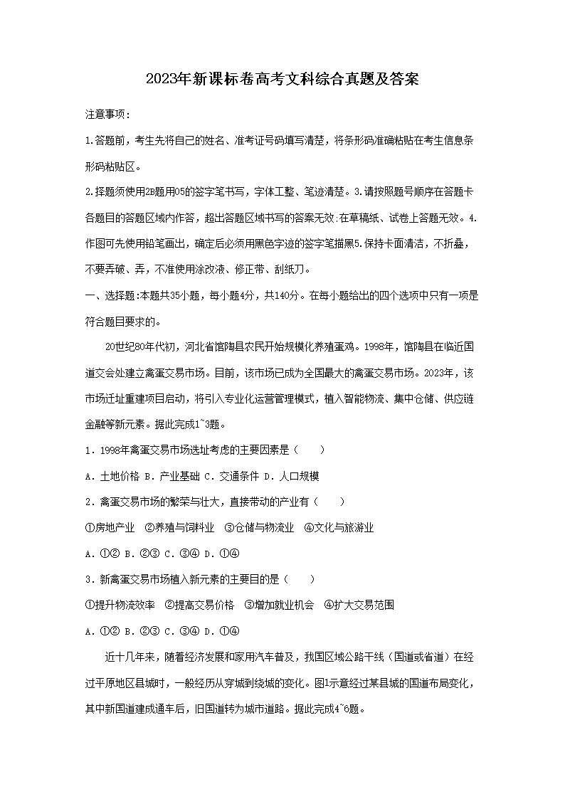 2023年新课标卷高考文科综合真题及答案(Word版)06-17