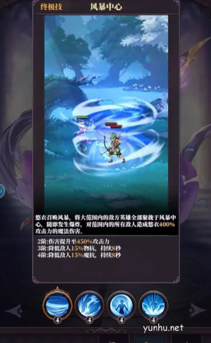 悠衣召唤风暴,将大范围内的敌方英雄全部聚拢于风暴中心,随即发生爆炸,对范围内的所有敌人造成悠衣600%攻击力的魔法伤害。