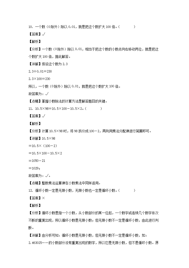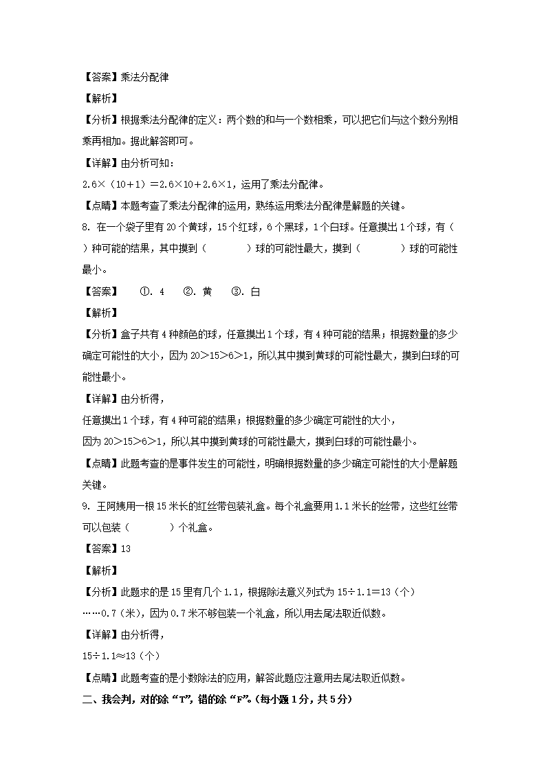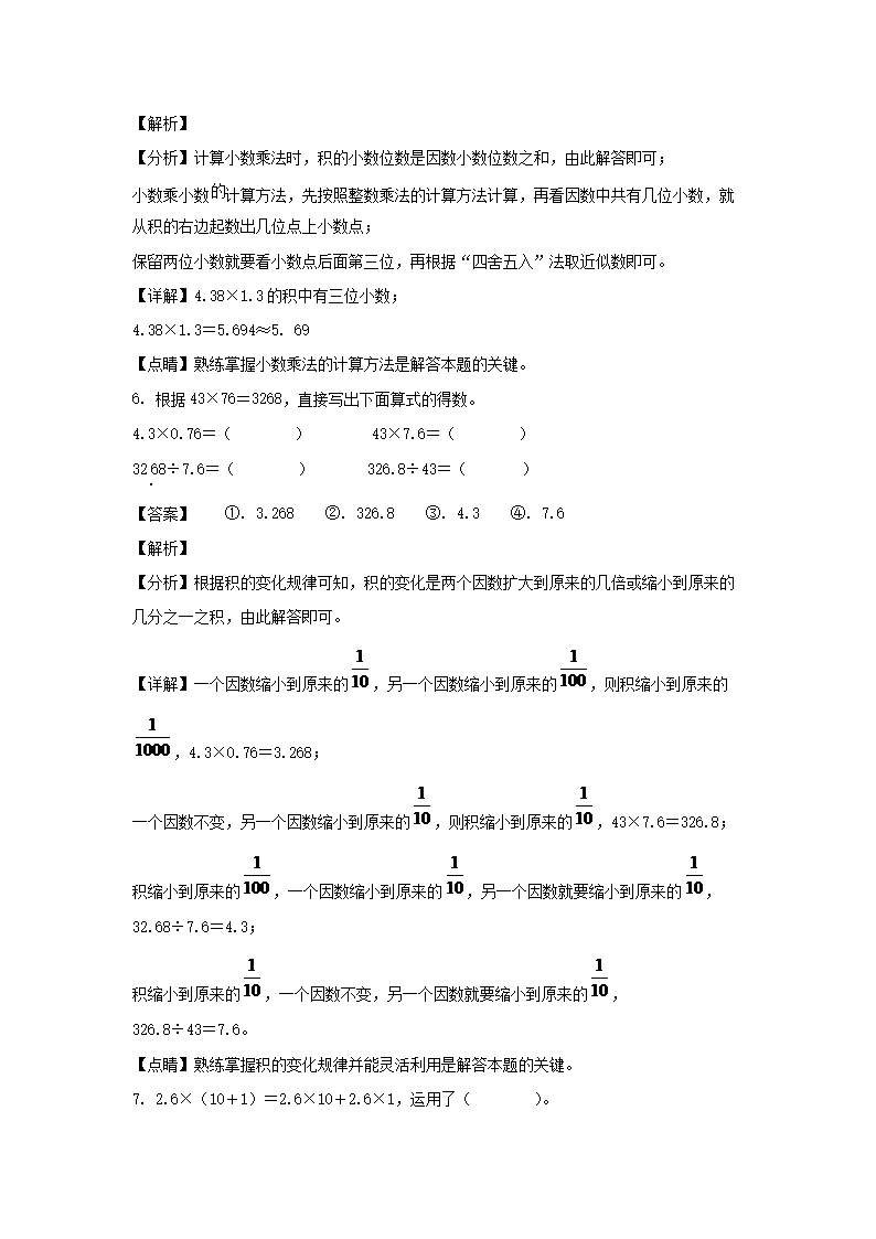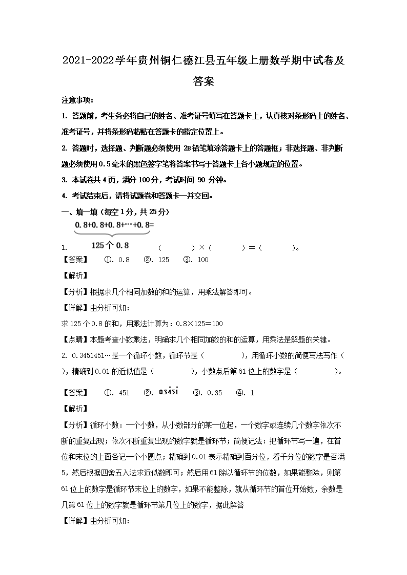2021-2022学年贵州铜仁德江县五年级上册数学期中试卷及答案(Word版)08-31