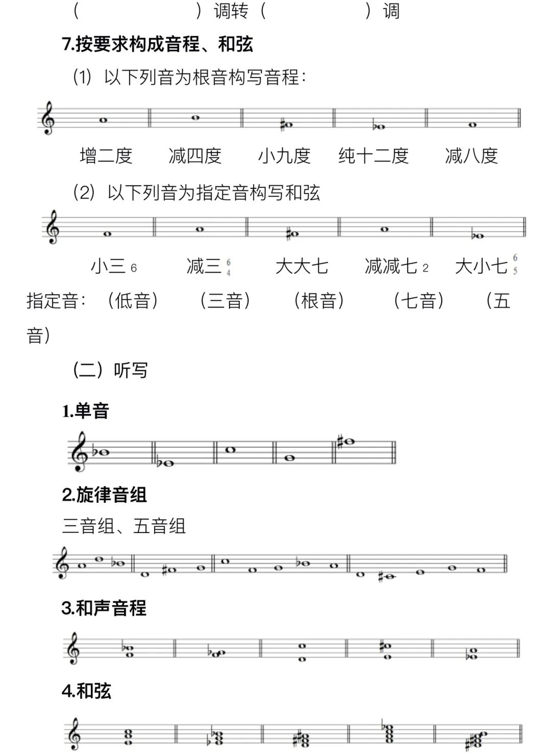 3.考试形式:采取笔试或机试方式,使用五线谱记谱,提供标准音a1参照。