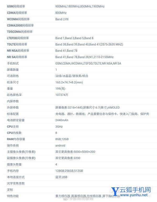 影像方面,手机后置 5000 万像素双主摄,其中一颗预计为 150° 超广角镜头;还配备一颗 200 万像素摄像头,预计为景深镜头。手机前置摄像头为 3200 万像素,采用屏下指纹识别的方式。