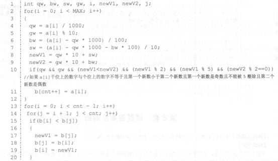本题类似第24套试题,通过审题可以发现主要是对四位数的筛选条件有所不同,体现在3个方面:新组合的第一个数小于第二个数,可通过比较运算符进行判断;整除关系的判断以及奇偶数的判断,可通过求余运算符(%)进行判断。参考答案的第10条语句,可集中修改该条件语句符合题目的要求。