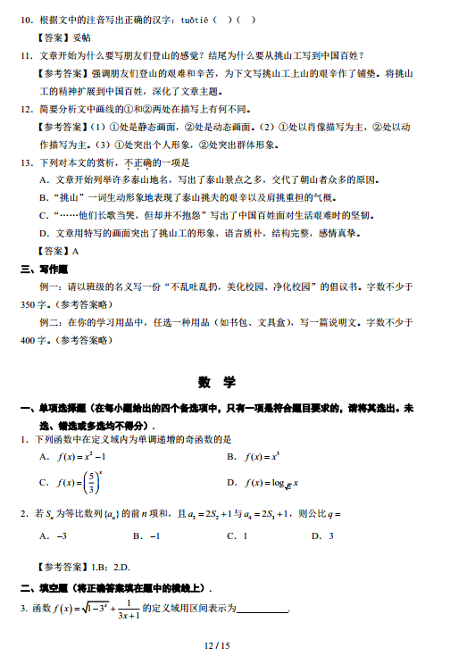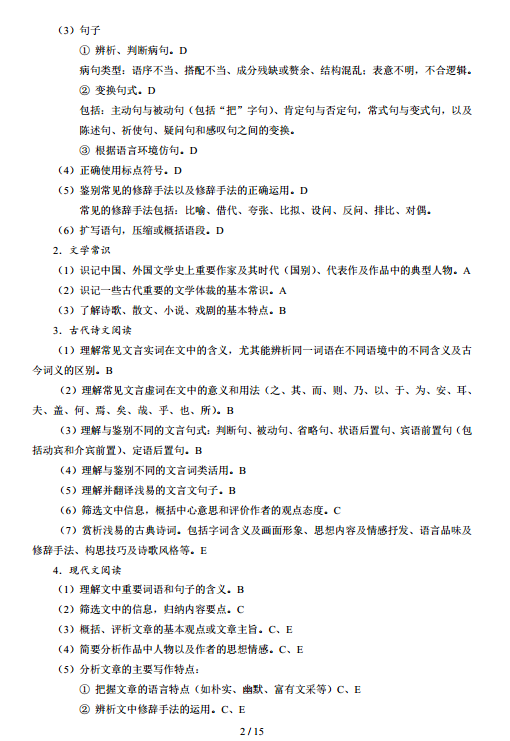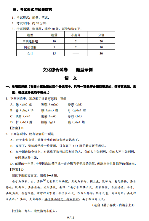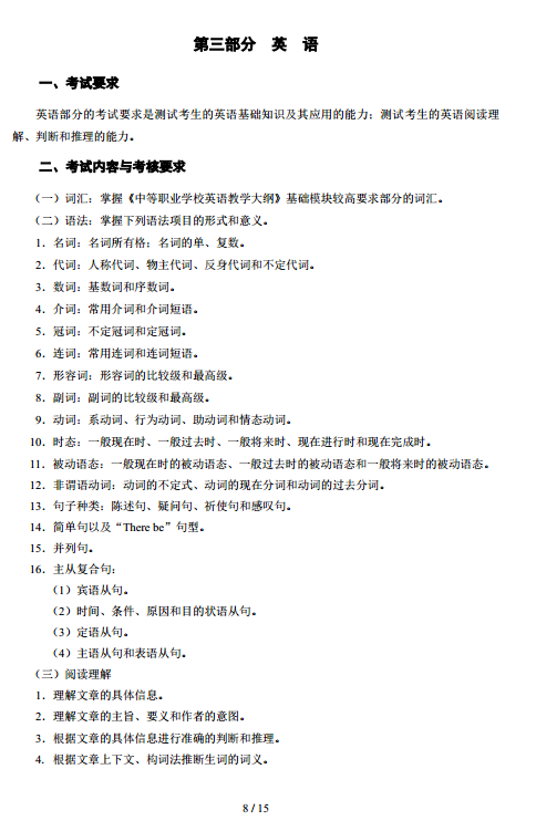 2017年湖北技能高考大纲:文化综合04-13