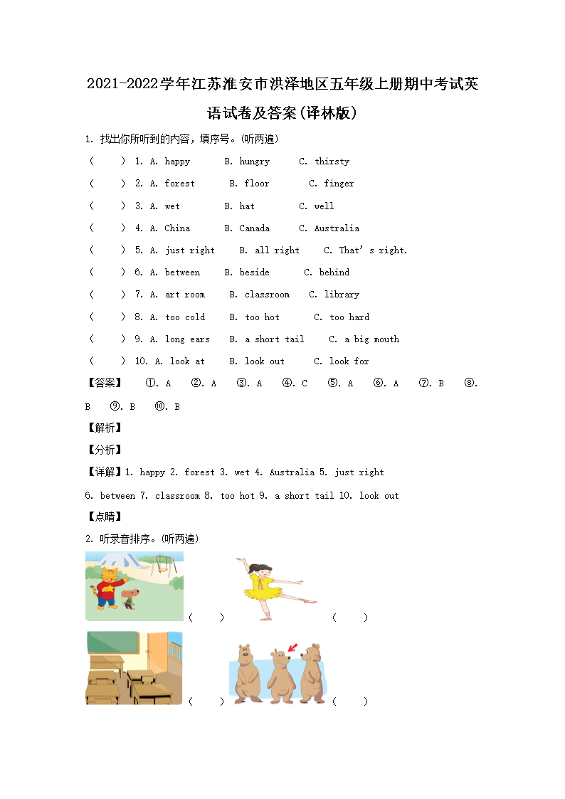 2021-2022学年江苏淮安市洪泽地区五年级上册期中考试英语试卷及答案(译林版)(Word版)09-23