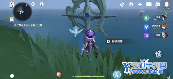 在我们点击召唤浪船后,固定会刷新在这附近,可以飞过去也可以游过去。