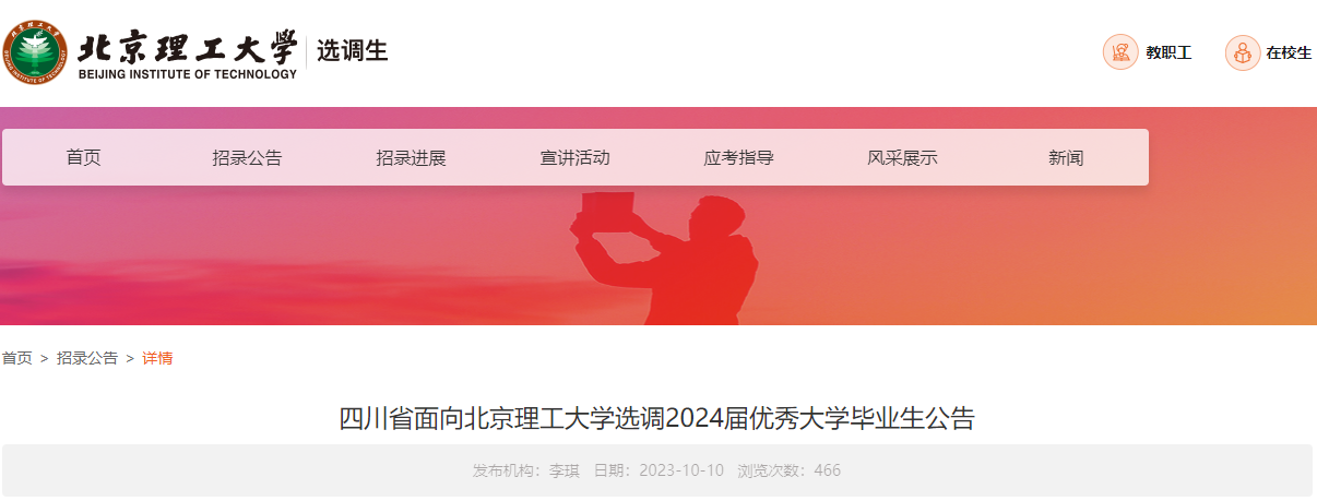 四川省面向北京理工大学选调2024届优秀大学毕业生公告10-13