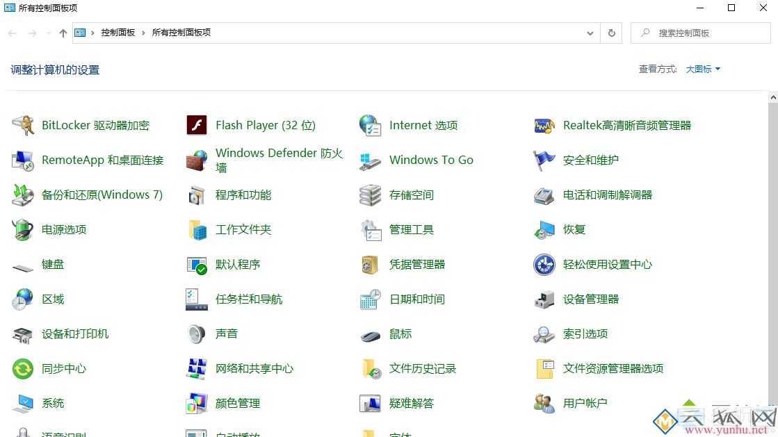 打开电脑的控制面板功能,在查看方式是大图标的前提下点击鼠标