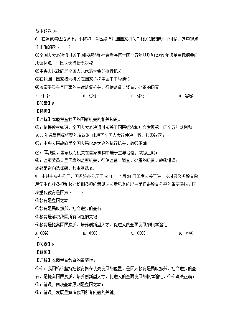 2022年内蒙古通辽市中考道德与法治真题及答案(Word版)06-06