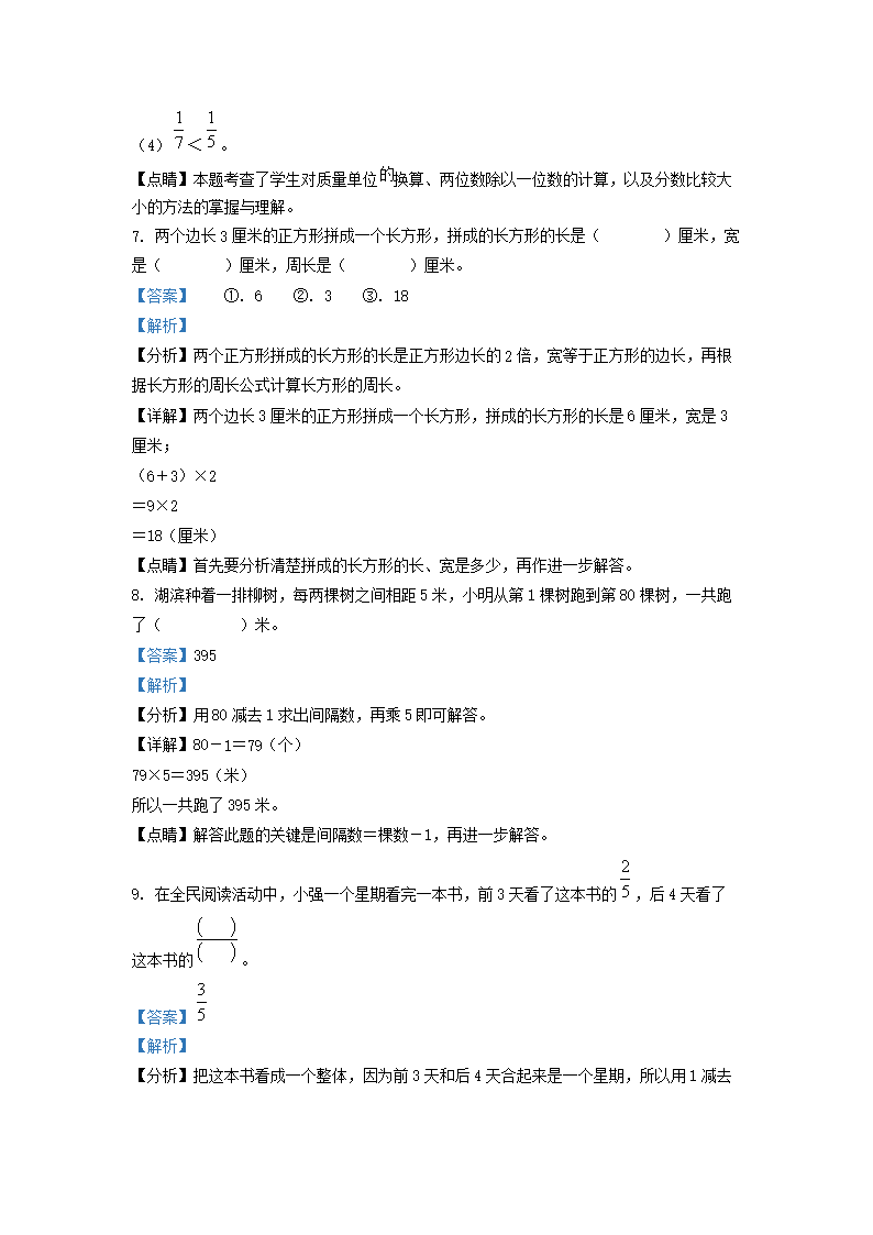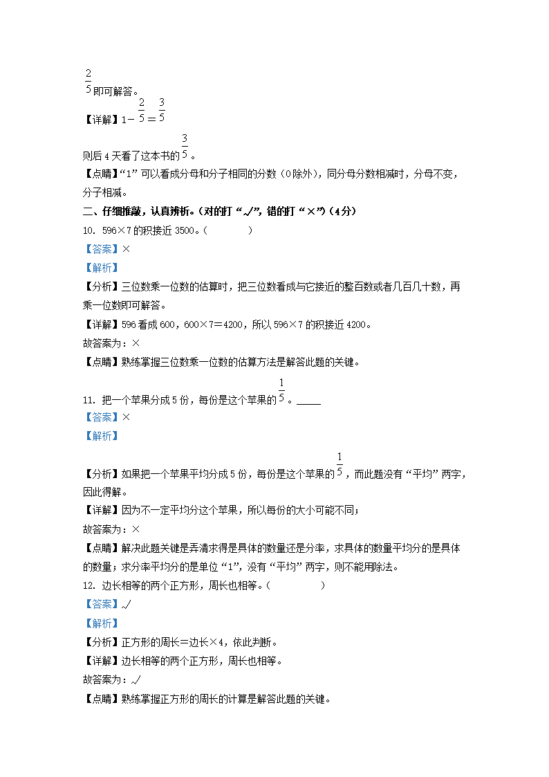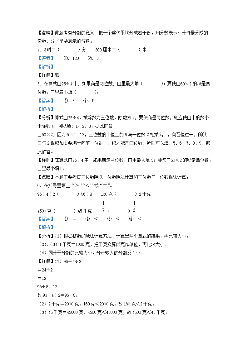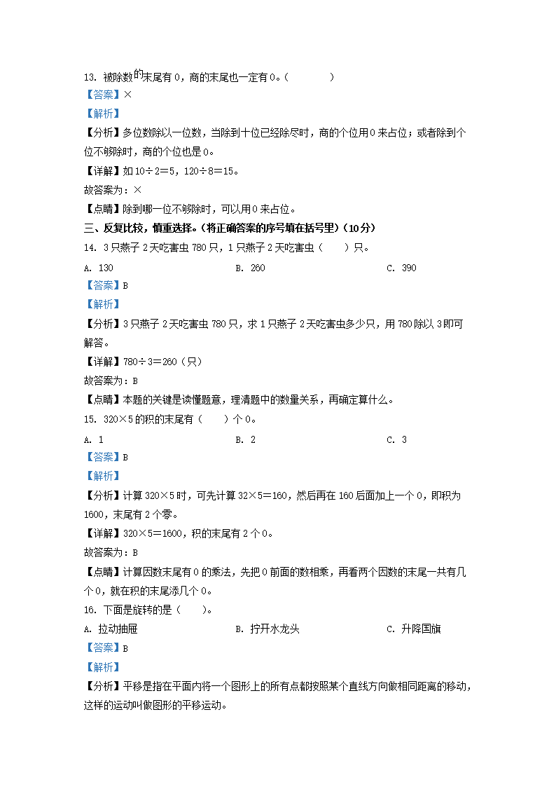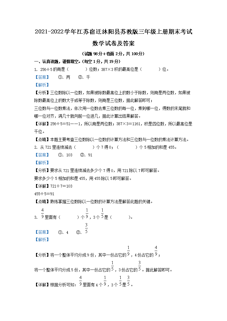2021-2022学年江苏宿迁沐阳县苏教版三年级上册期末考试数学试卷及答案(Word版)07-18