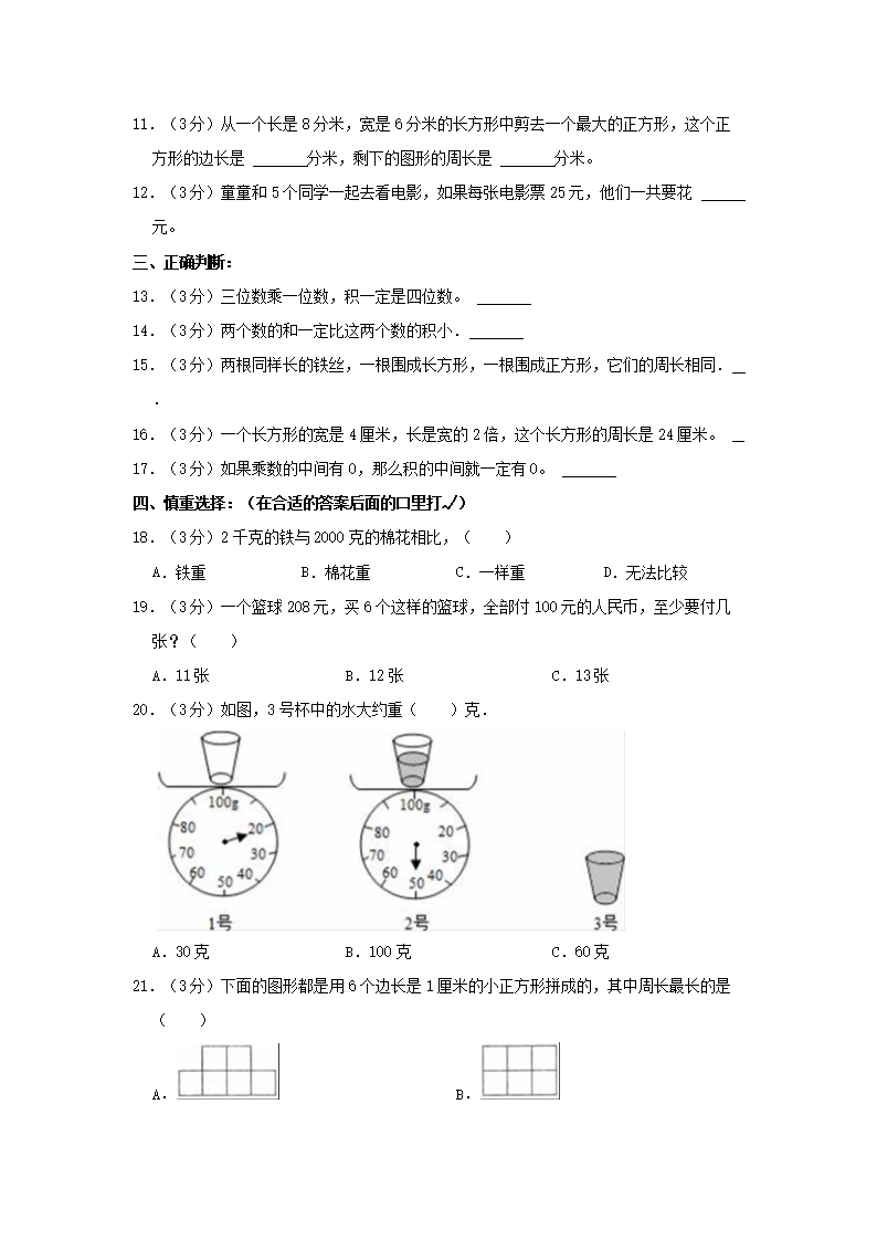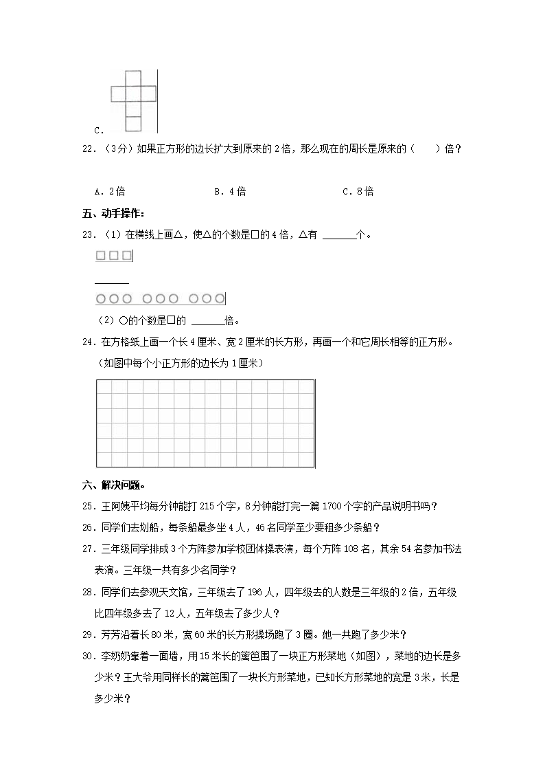 2022-2023学年江苏省泰州市兴化市三年级上学期期中数学试卷及答案(Word版)07-07