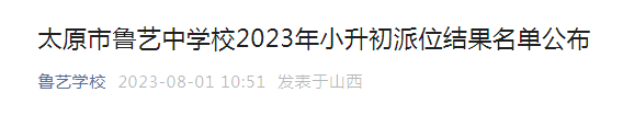点击查看:山西太原市鲁艺中学校2023年小升初派位结果名单