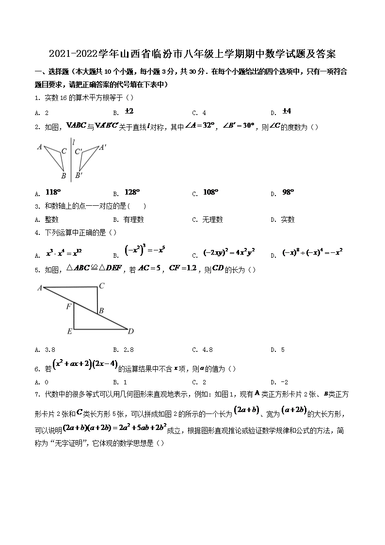 2021-2022学年山西省临汾市八年级上学期期中数学试题及答案(Word版)10-14