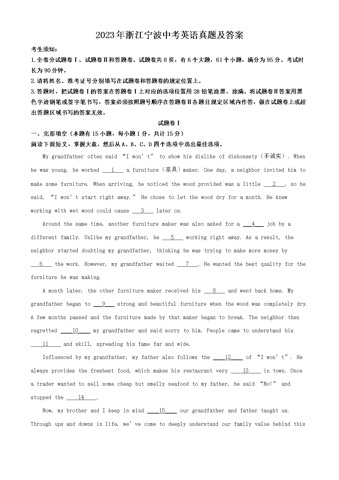 【文档预览】 文档大全网整理发布2023年浙江宁波中考英语真题及答案(Word版),前五页预览如下: