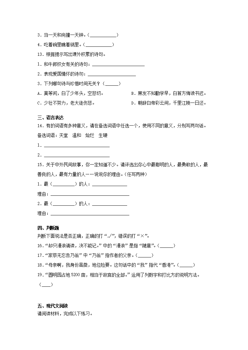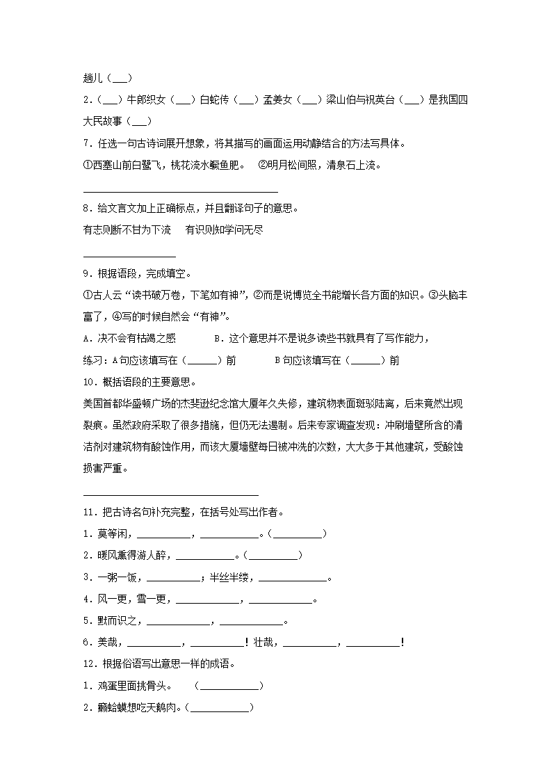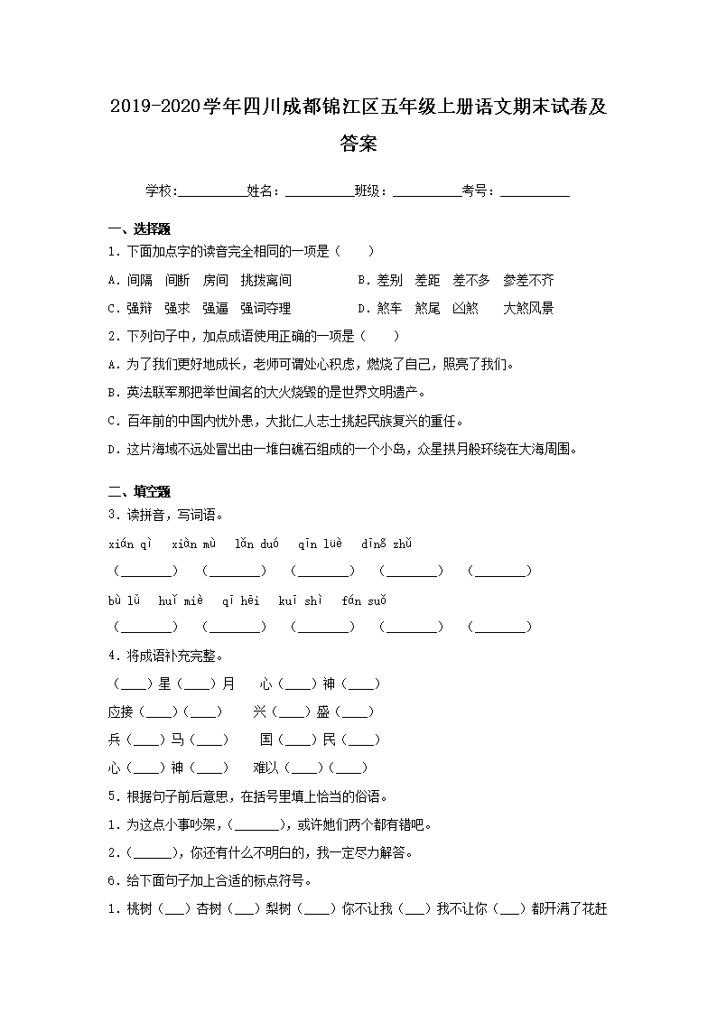 2019-2020学年四川成都锦江区五年级上册语文期末试卷及答案(Word版)08-26