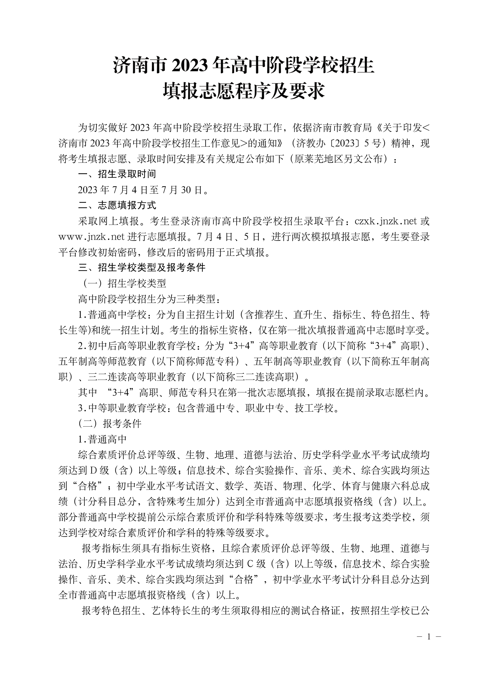 山东济南2023年高中阶段学校招生填报志愿指导手册(莱芜区、钢城区)06-30