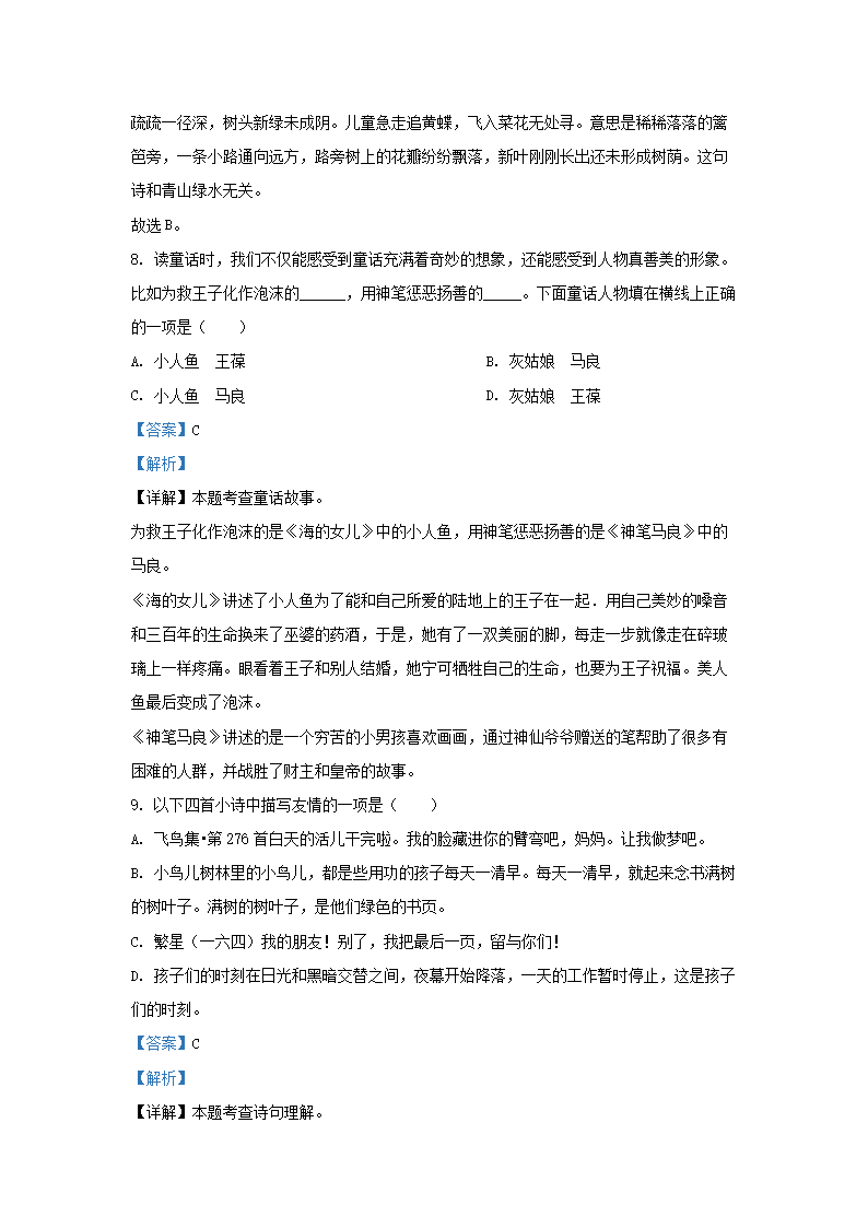 2021-2022学年北京海淀四年级下学期期末语文真题及答案(Word版)07-08