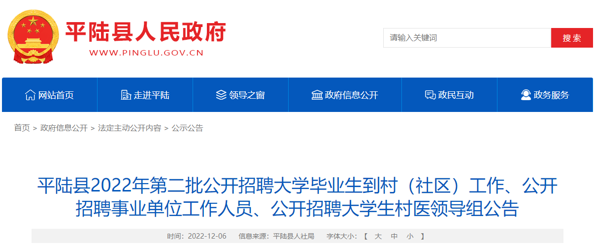 原文标题:平陆县2022年第二批公开招聘大学毕业生到村(社区)工作、公开招聘事业单位工作人员、公开招聘大学生村医领导组公告