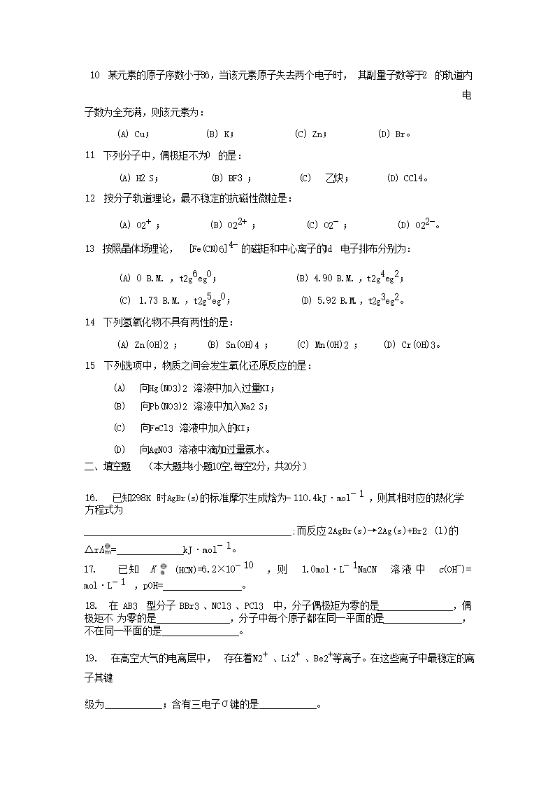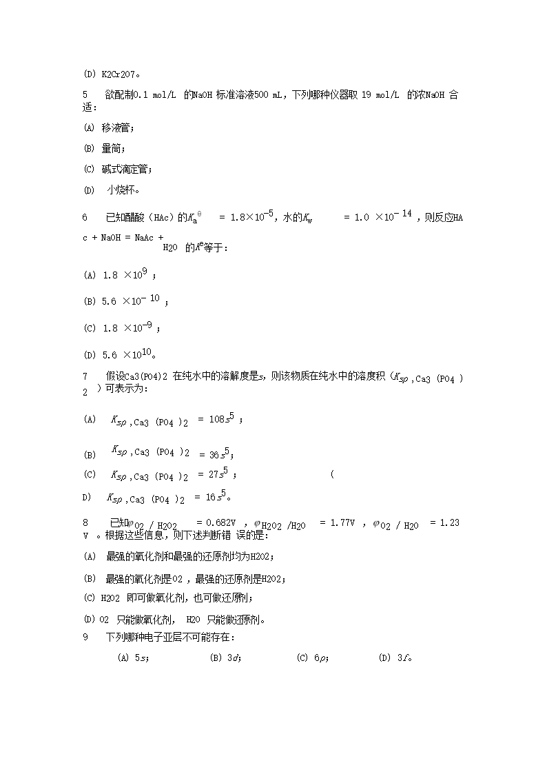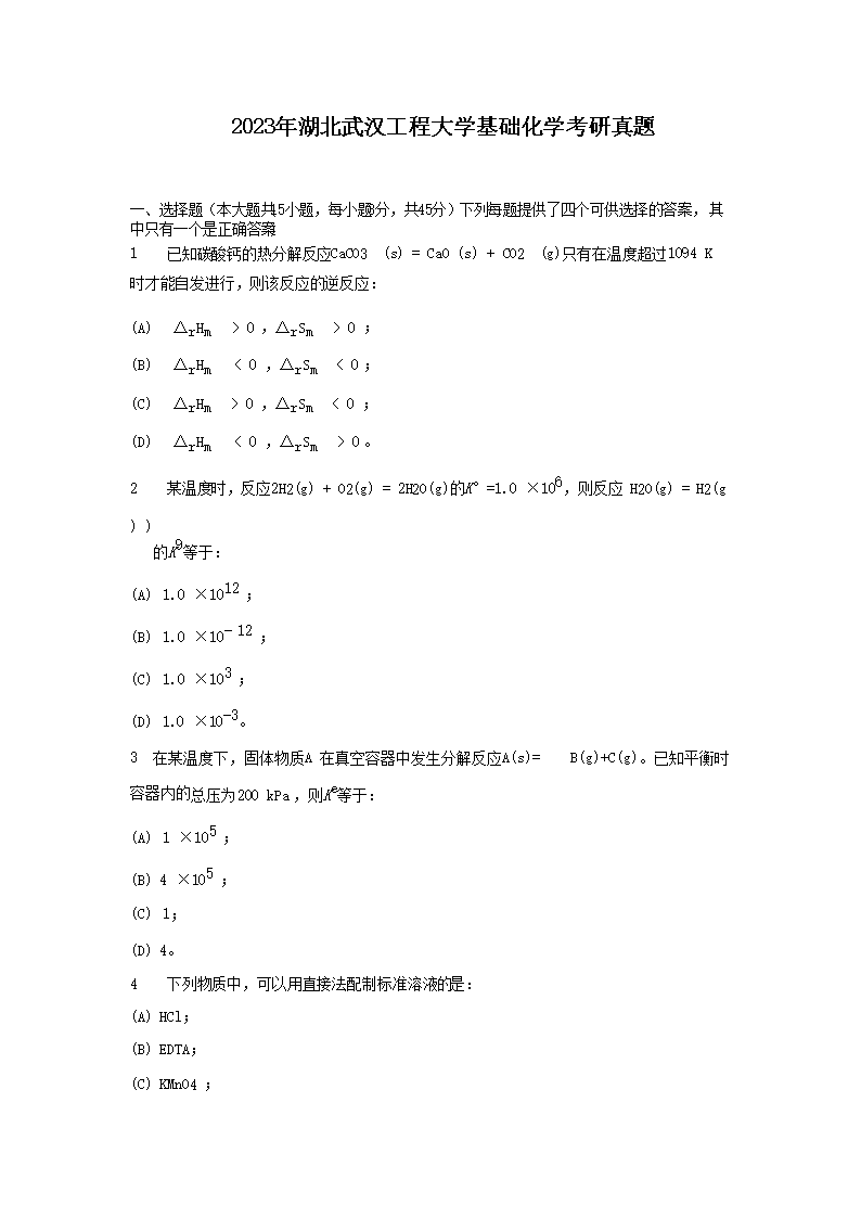 2023年湖北武汉工程大学基础化学考研真题(Word版)10-13