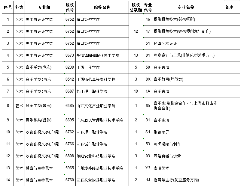 江西省2023年高职(专科)艺术类平行志愿缺额院校及专业统计表(第二次征集)08-11