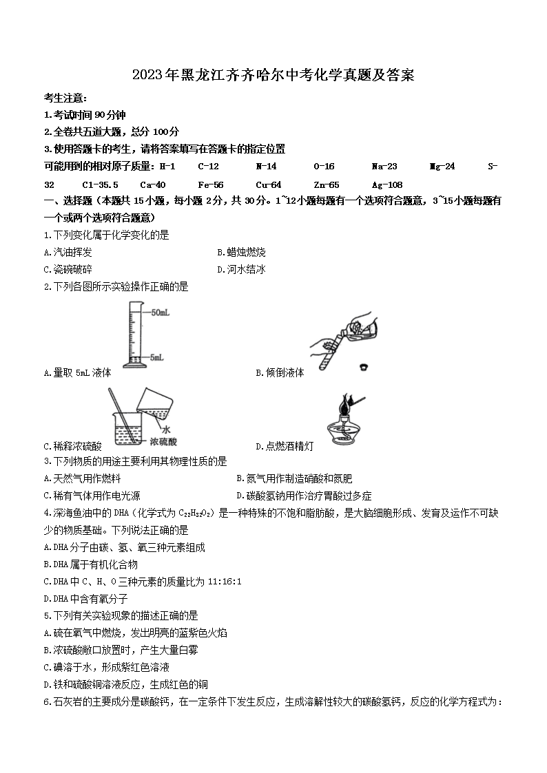 2023年黑龙江齐齐哈尔中考化学真题及答案(Word版)06-29