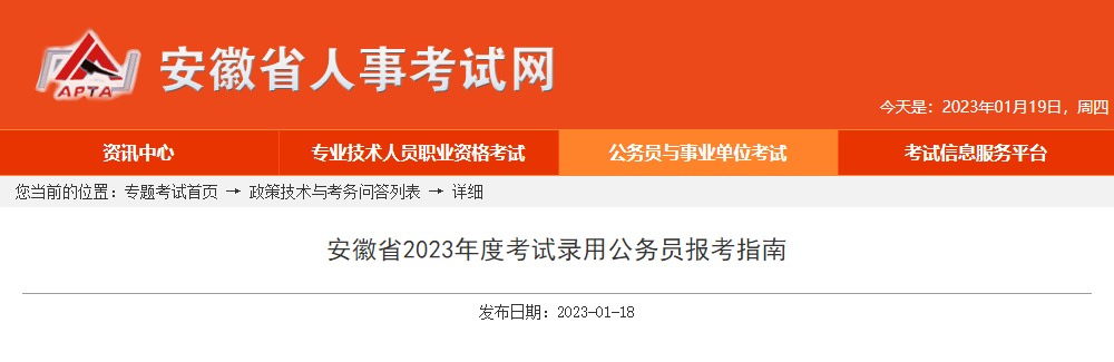 原文标题:安徽省2023年度考试录用公务员报考指南