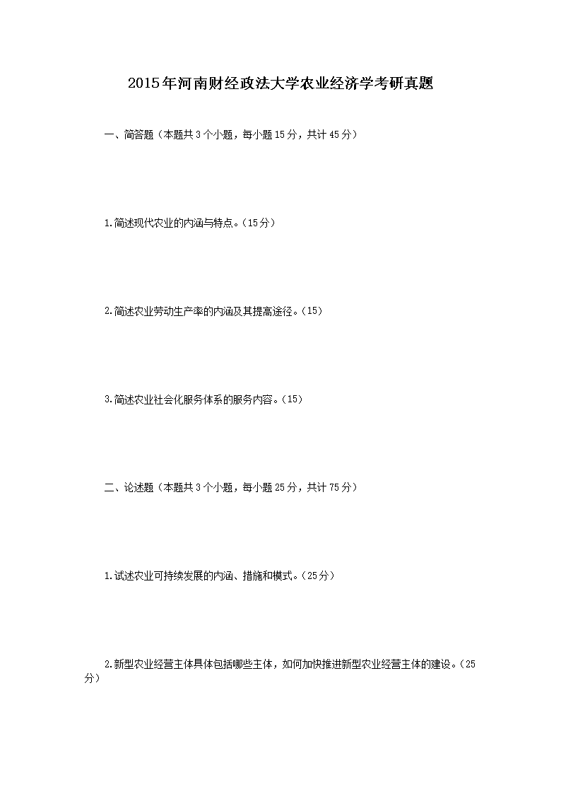 2015年河南财经政法大学农业经济学考研真题(Word版)06-20