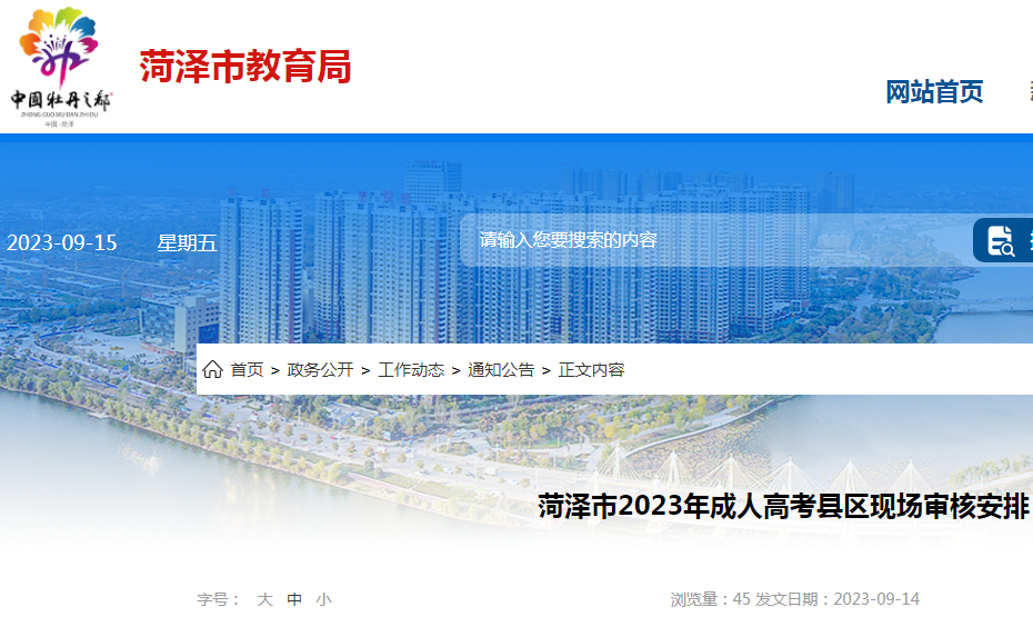 山东菏泽2023年成人高考县区现场审核时间:9月17日-20日09-16