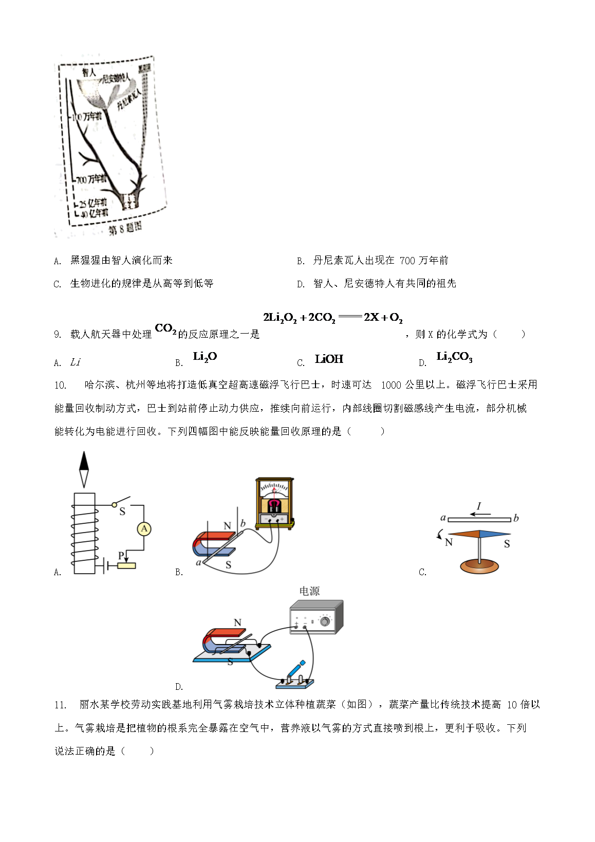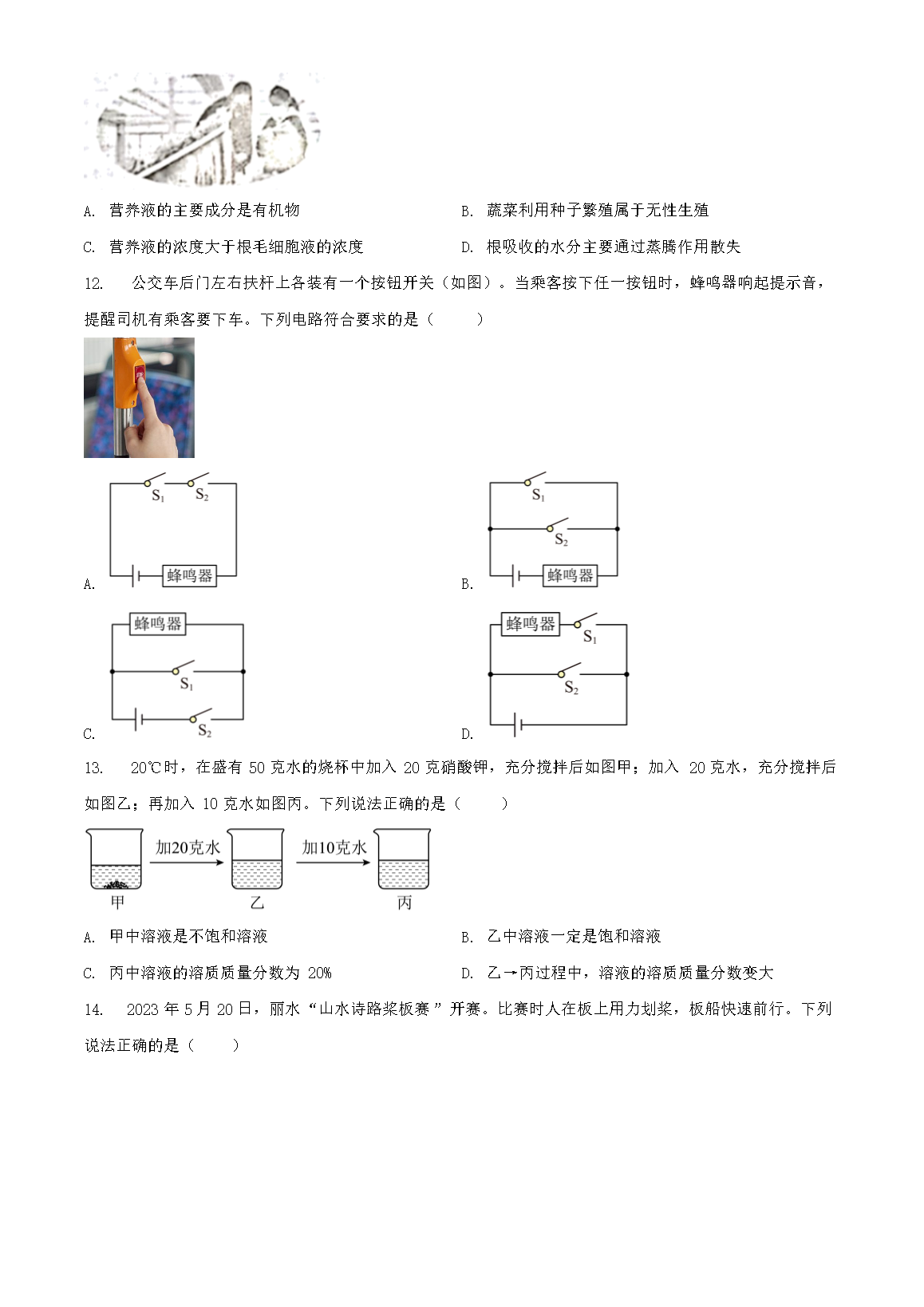 2023年浙江丽水中考科学真题及答案(Word版)06-20
