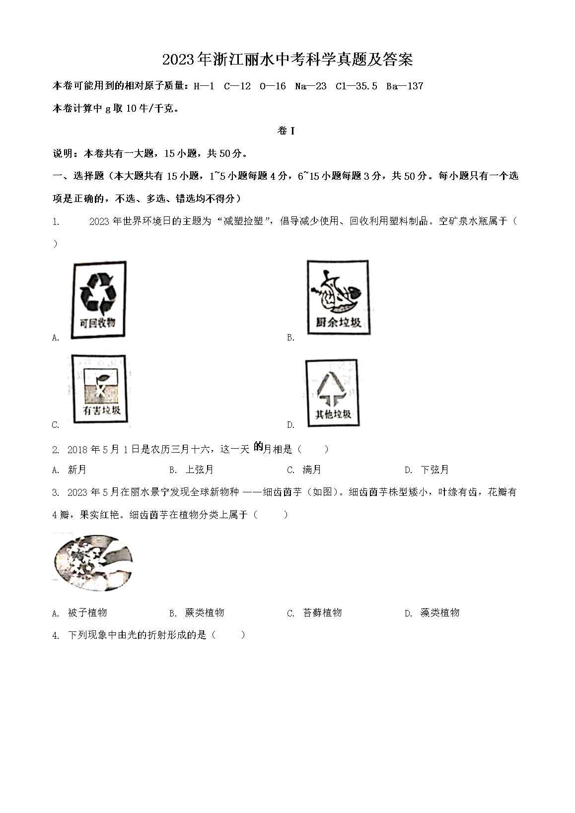 【文档预览】 文档大全网整理发布2023年浙江丽水中考科学真题及答案(Word版),前五页预览如下: