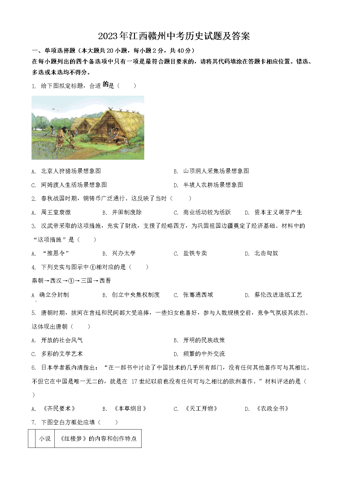 2023年江西赣州中考历史试题及答案(Word版)06-23