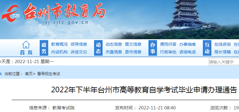 原文标题:2022年下半年台州市高等教育自学考试毕业申请办理通告