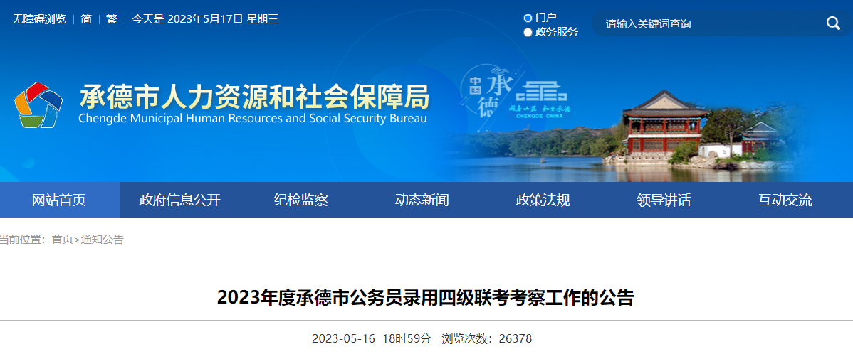 原文标题:2023年度承德市公务员录用四级联考考察工作的公告
