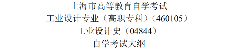 原文标题:上海市高等教育自学考试 工业设计专业(高职专科)(460105) 工业设计史(04844) 自学考试大纲