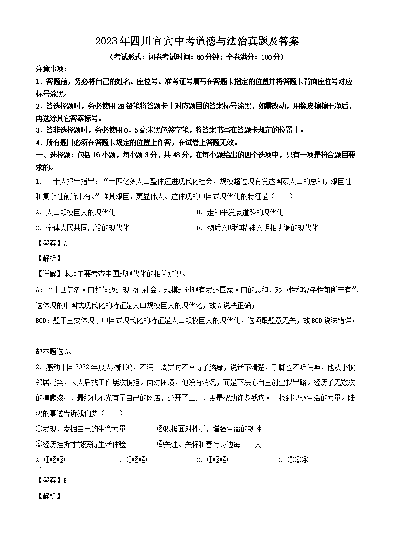 【文档预览】 文档大全网整理发布2023年四川宜宾中考道德与法治真题及答案(Word版),前五页预览如下: