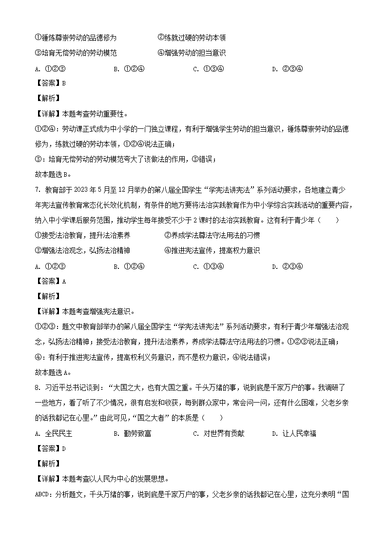 2023年四川宜宾中考道德与法治真题及答案(Word版)06-22