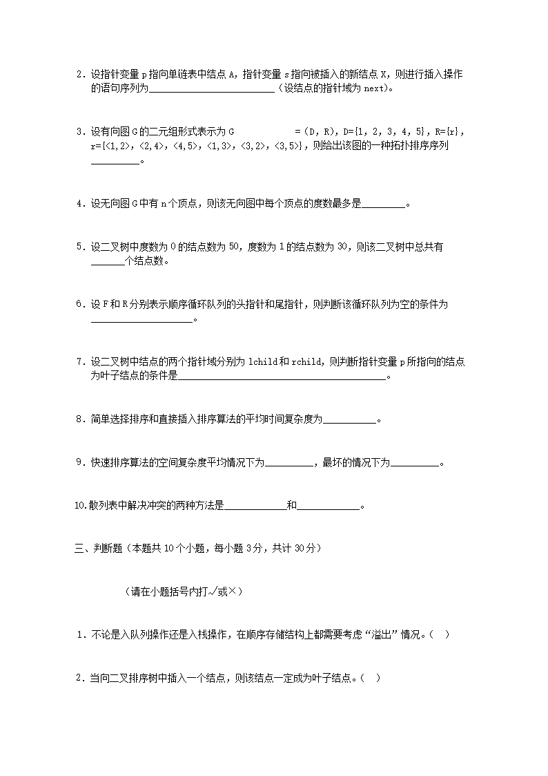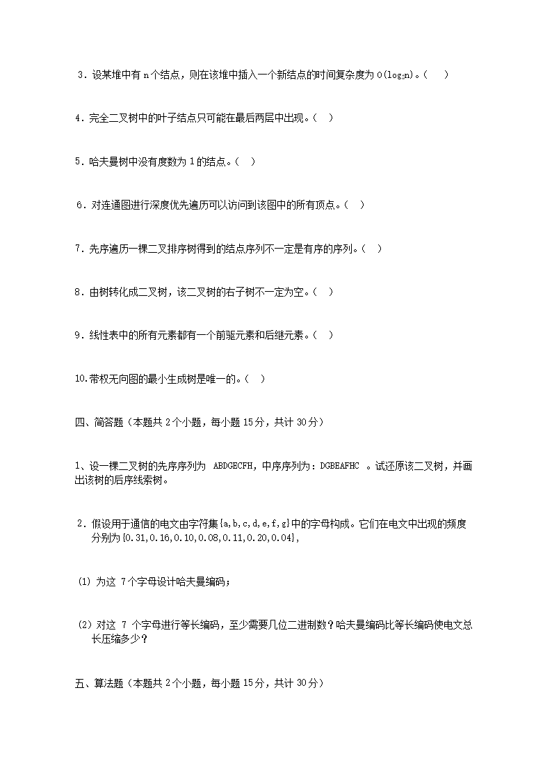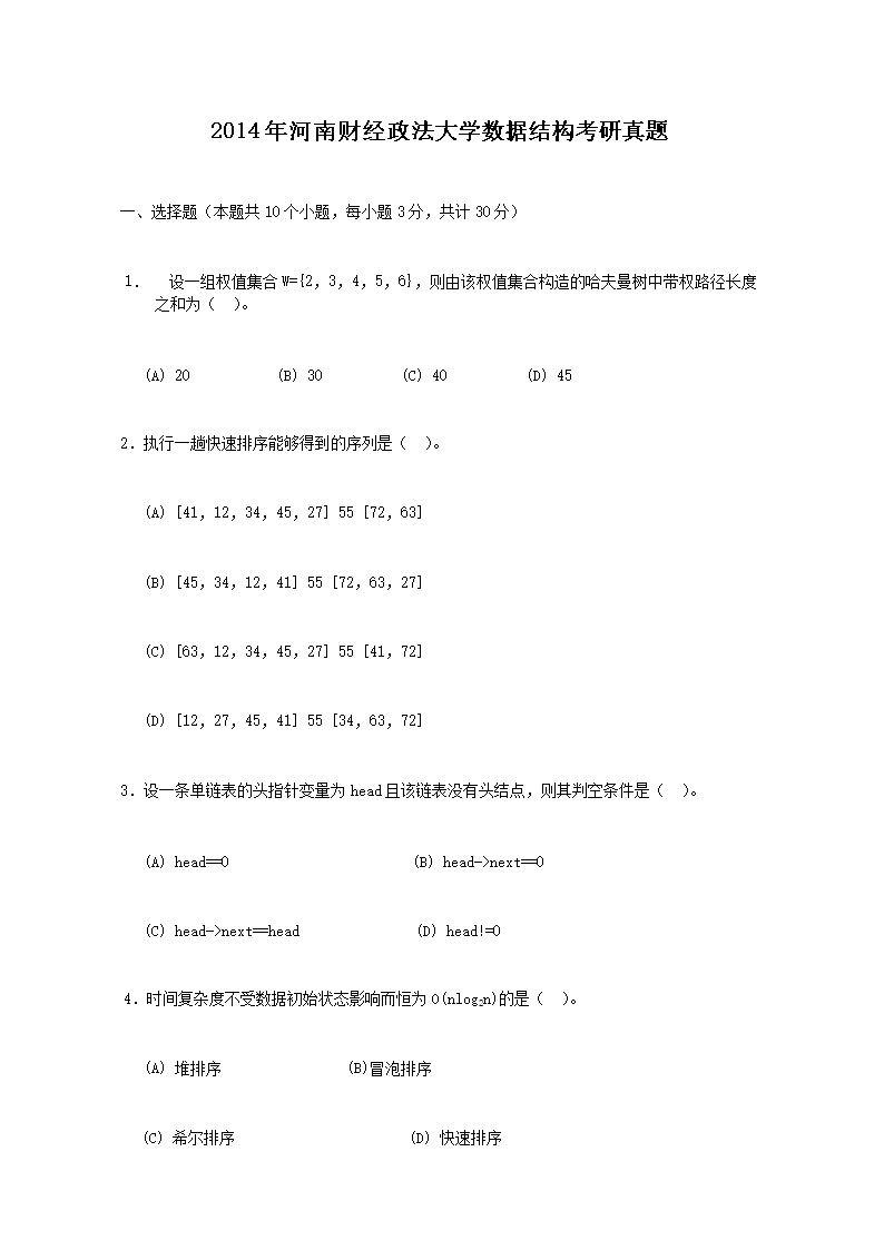 2014年河南财经政法大学数据结构考研真题(Word版)06-20