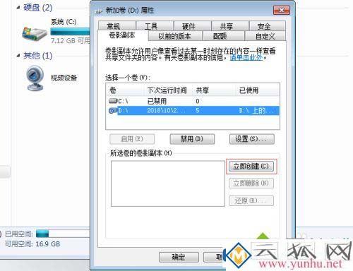 5、如果现在删除或者修改了D盘内的某个共享文件夹内容了,我该如何恢复呢?其实也很简单,选中对应的卷影副本,然后点击还原即可。