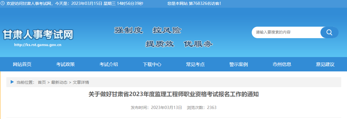 原文标题:关于做好甘肃省2023年度监理工程师职业资格考试报名工作的通知