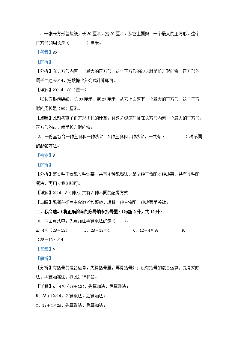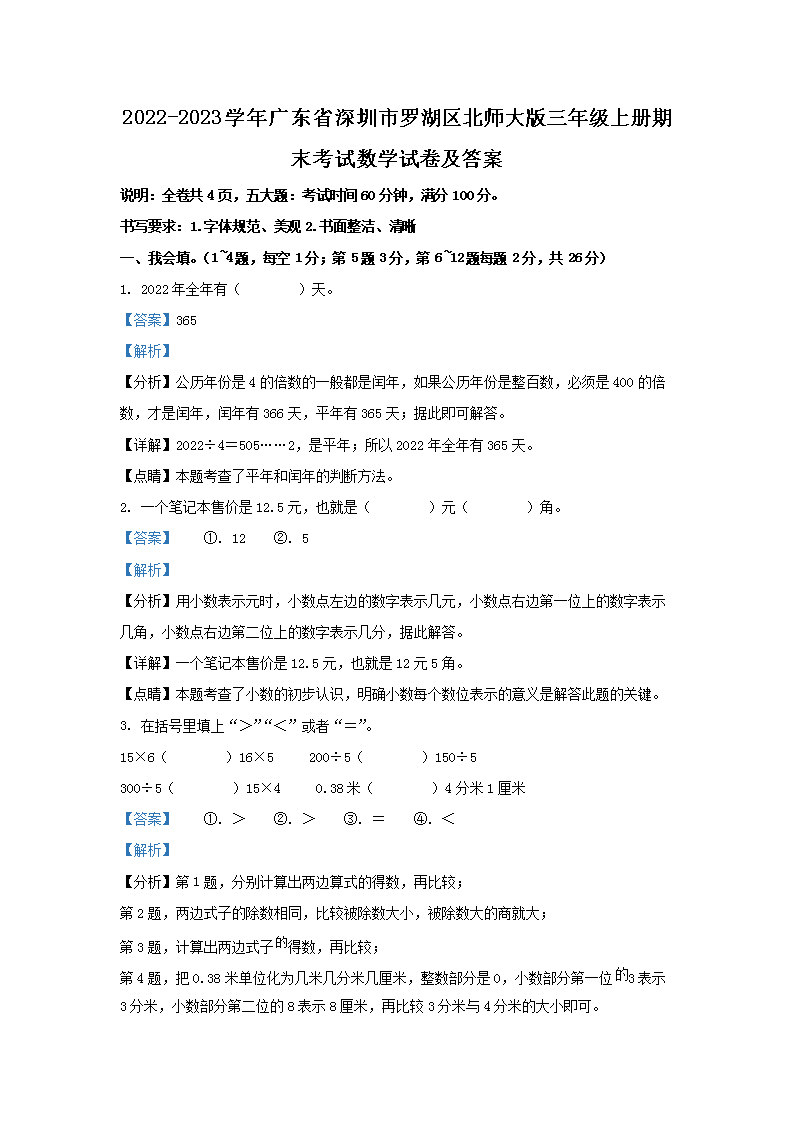 2022-2023学年广东省深圳市罗湖区北师大版三年级上册期末考试数学试卷及答案(Word版)08-11