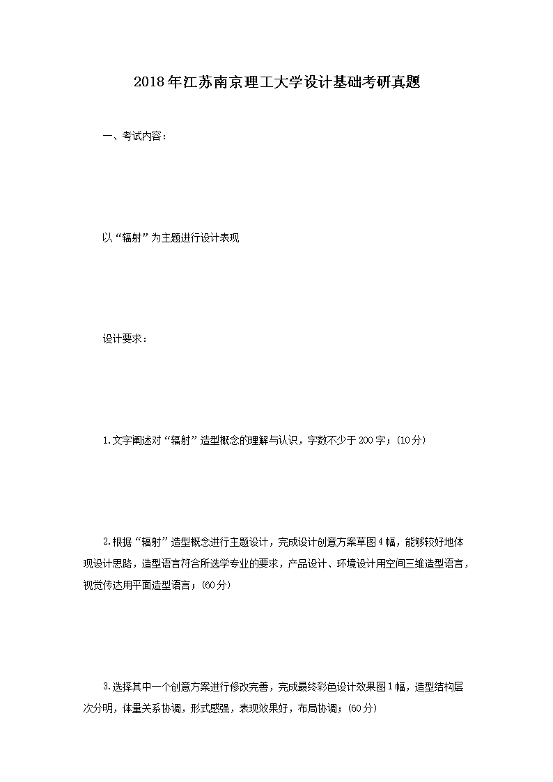 2018年江苏南京理工大学设计基础考研真题(Word版)06-26