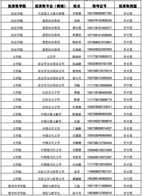 2018年淮北师范大学考研拟录取名单公布05-08