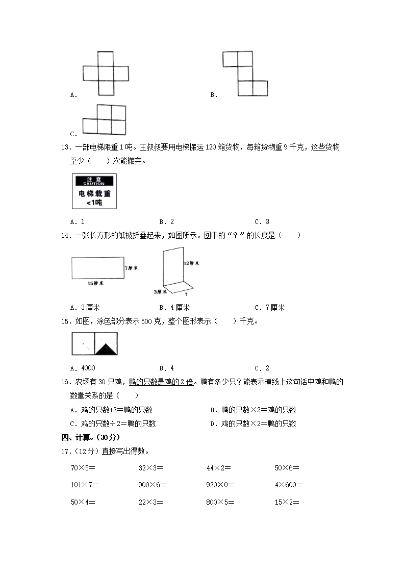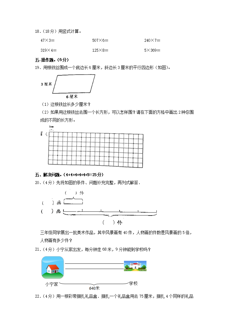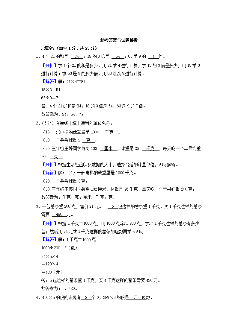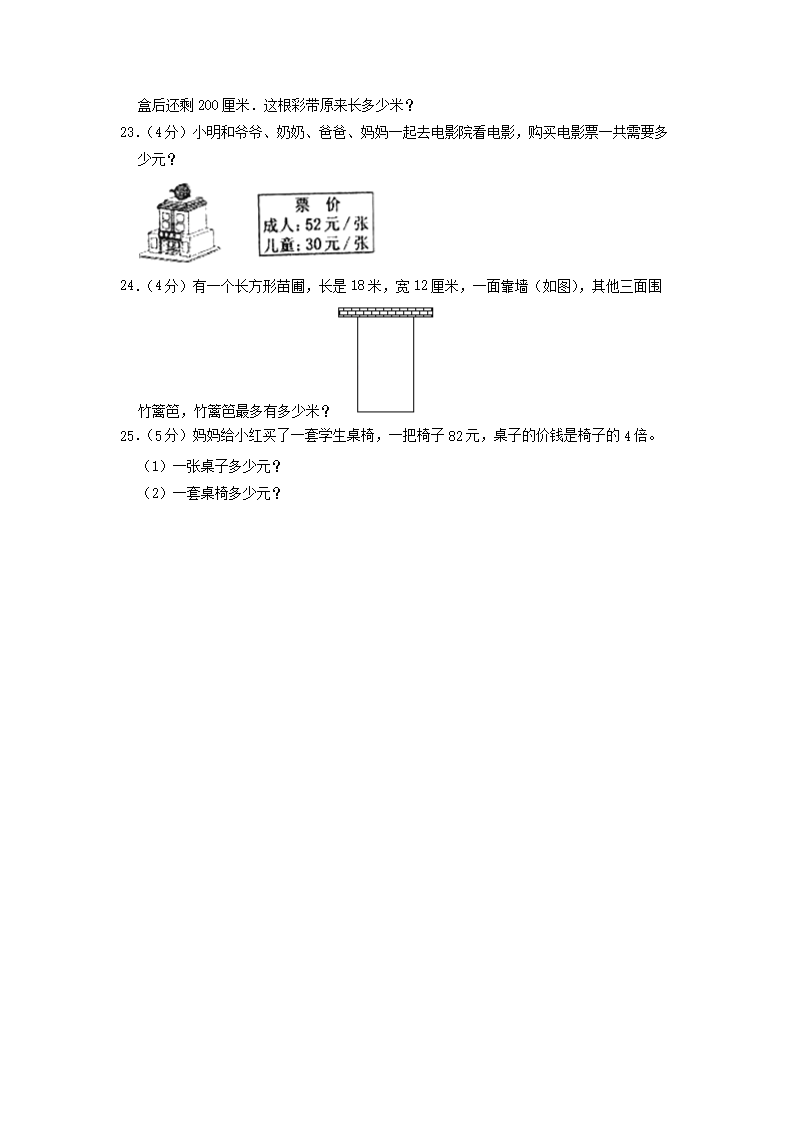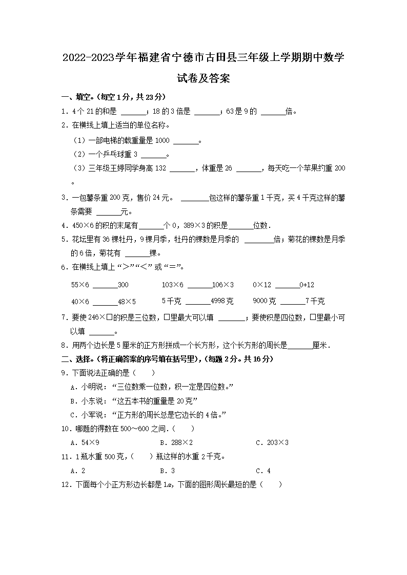 2022-2023学年福建省宁德市古田县三年级上学期期中数学试卷及答案(Word版)09-14