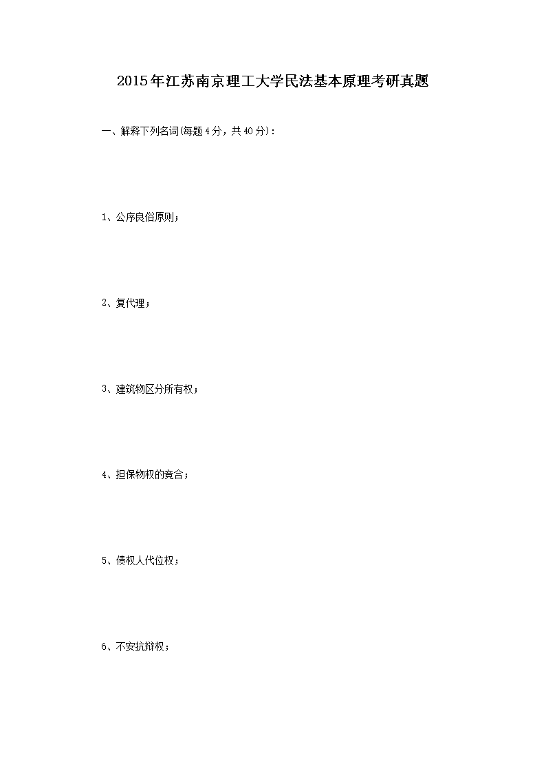 2015年江苏南京理工大学民法基本原理考研真题(Word版)06-30