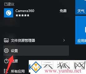点击Win10桌面左下角的“Windows图标”,从打开的扩展面板中点击“设置”按钮。