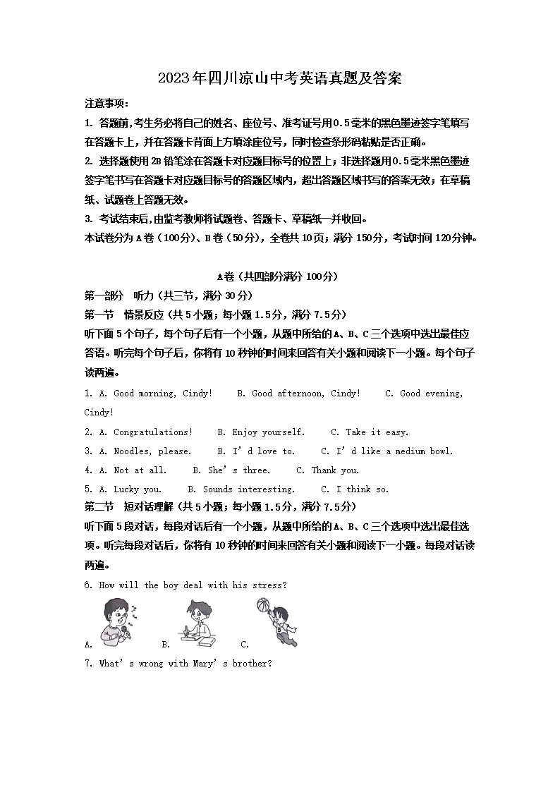 【文档预览】 文档大全网整理发布2023年四川凉山中考英语真题及答案(Word版),前五页预览如下: