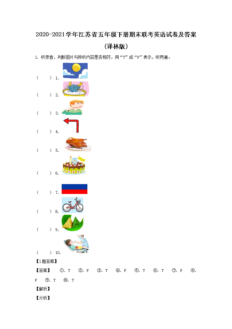 2020-2021学年江苏省五年级下册期末联考英语试卷及答案(译林版)(Word版)09-21